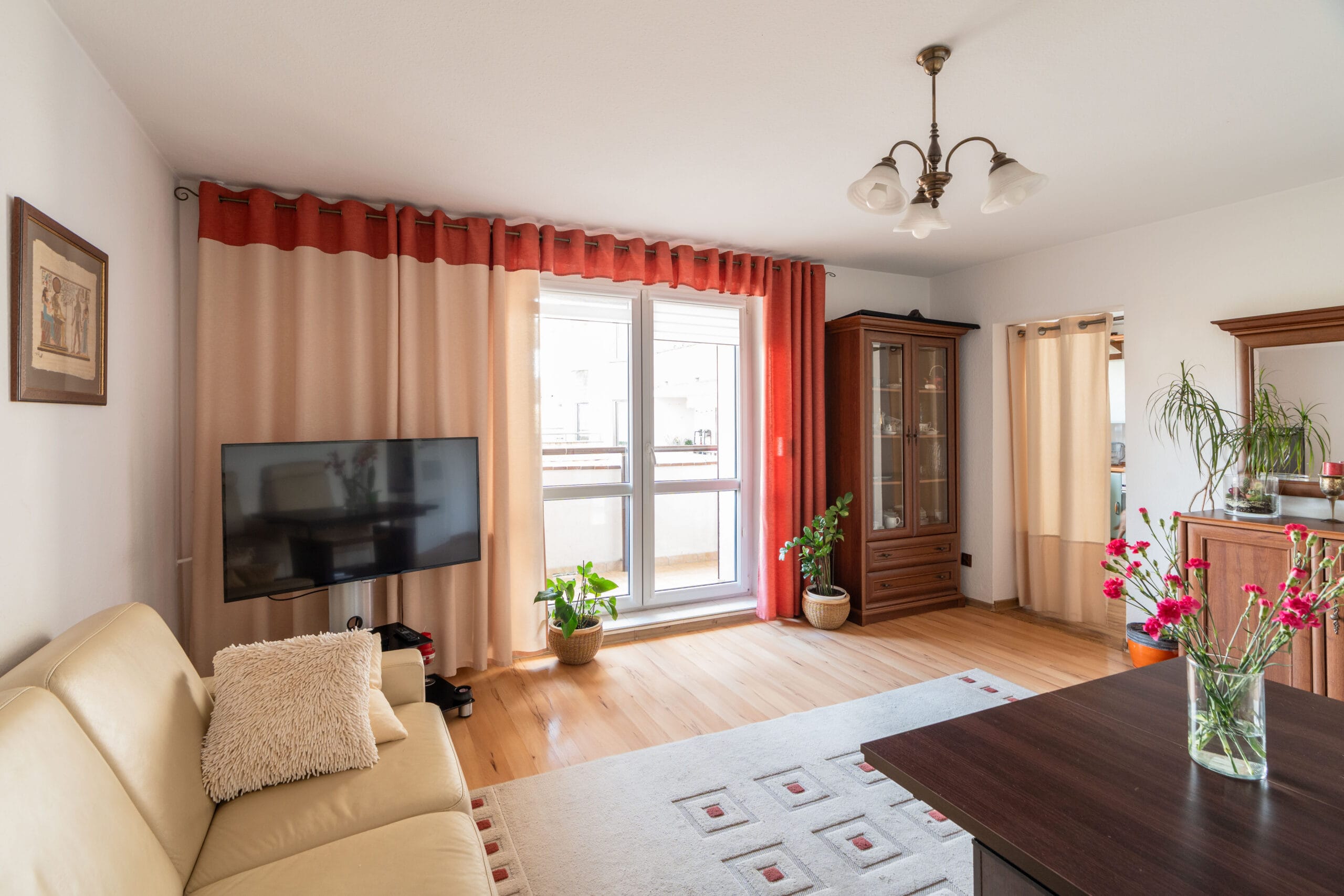 - Salon (23 m²): jasny, z wyjściem na balkon od strony południowej (widok na ratusz).