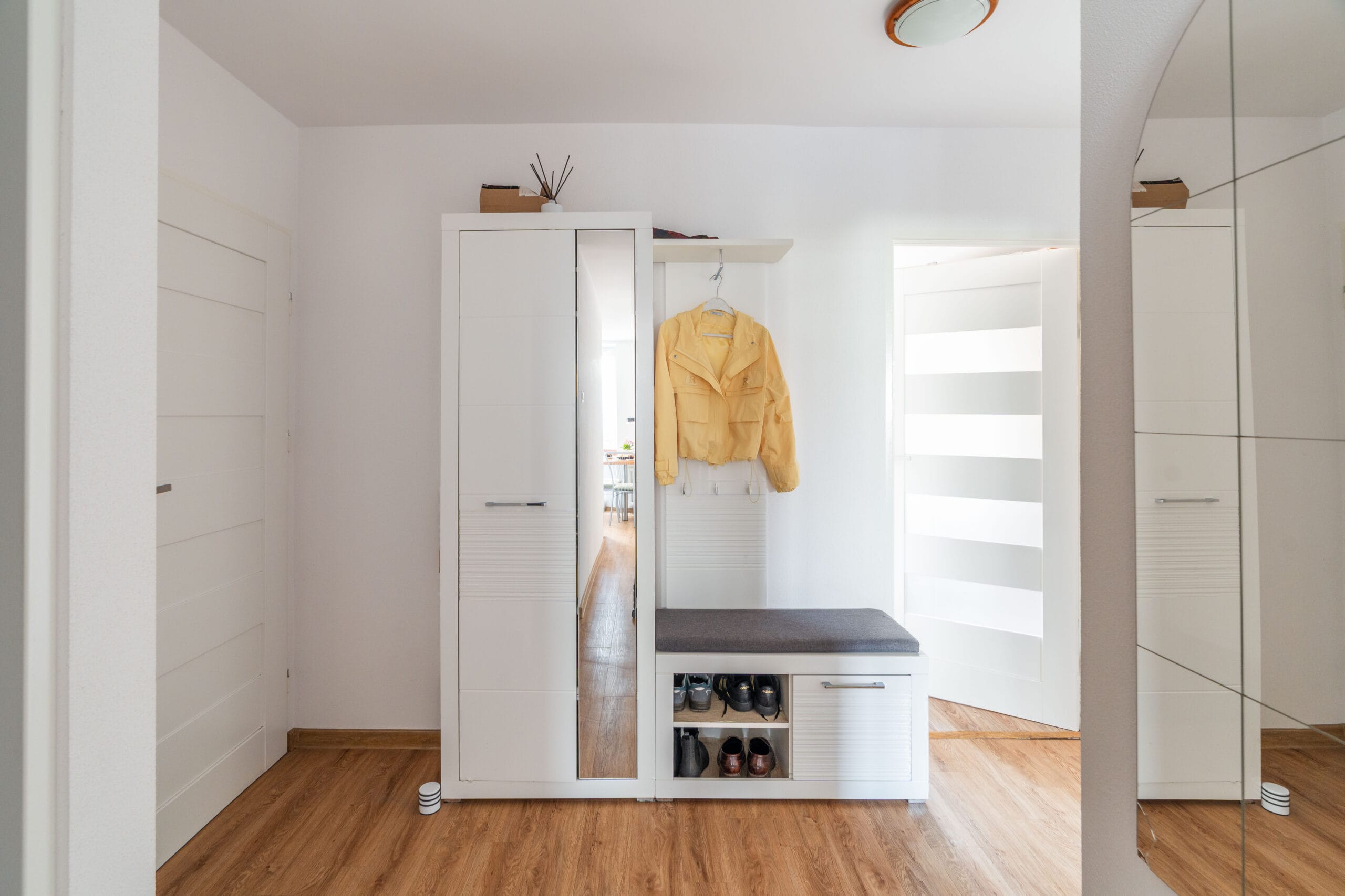 - Przedpokój (12 m²): szeroki, łączący wszystkie pomieszczenia.