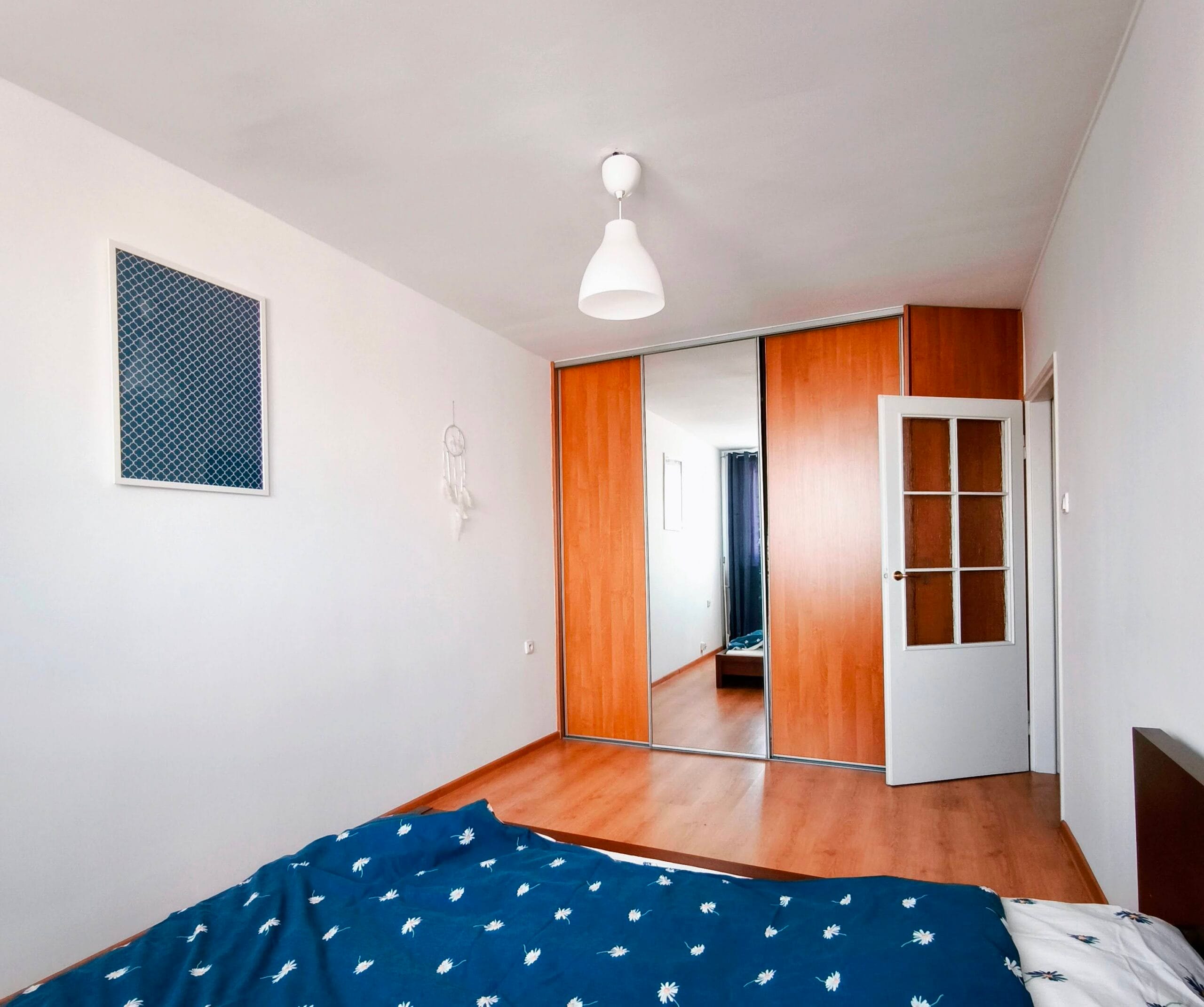 Wnętrze zostało już dla Ciebie przygotowane. Przestronny salon (20 m²) to serce mieszkania, wyposażone w wygodną sofę, stylową komodę oraz stół, przy którym zjesz posiłki i spędzisz czas z bliskimi. W sypialni (14 m²) znajdziesz wszystko, czego potrzebujesz do odpoczynku: wygodne łóżko z materacem oraz obszerną szafę typu Komandor, która pomieści wszystkie Twoje ubrania.